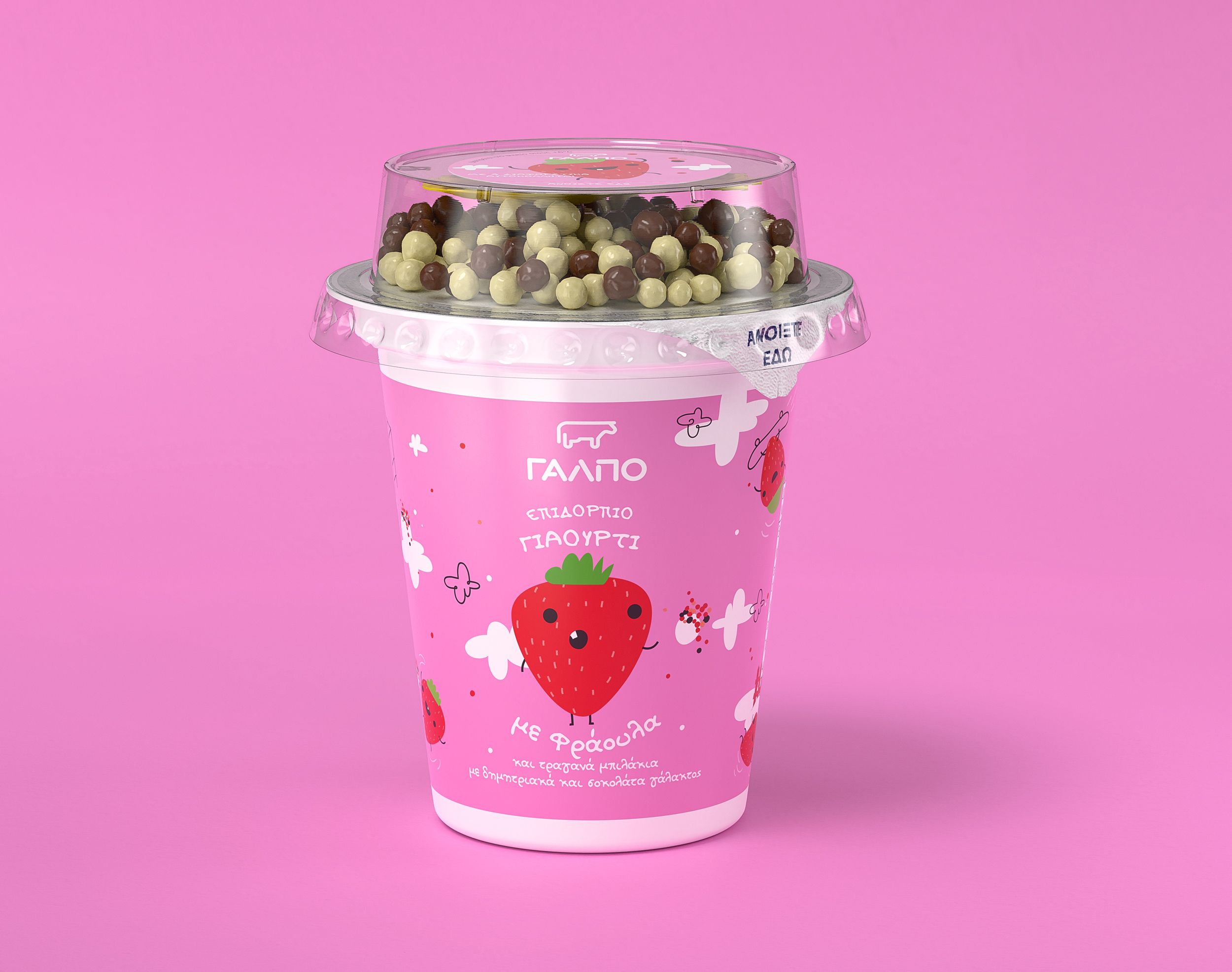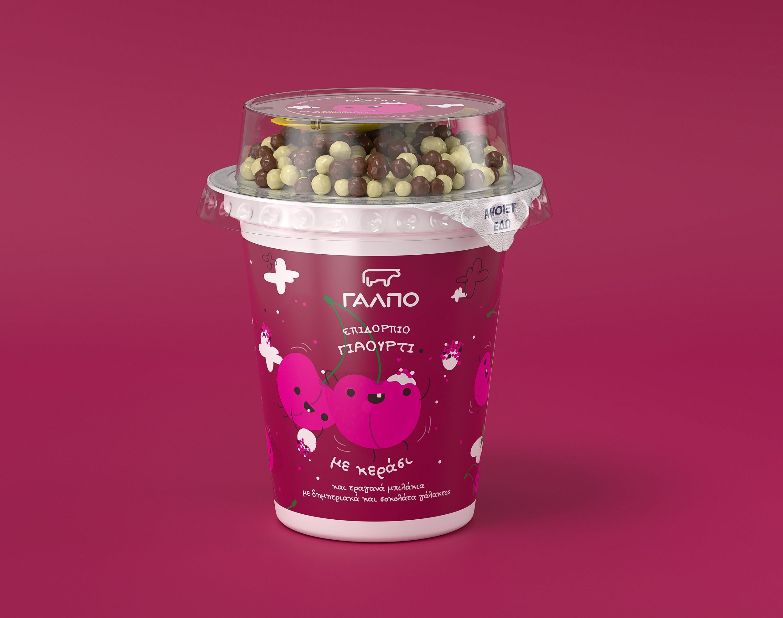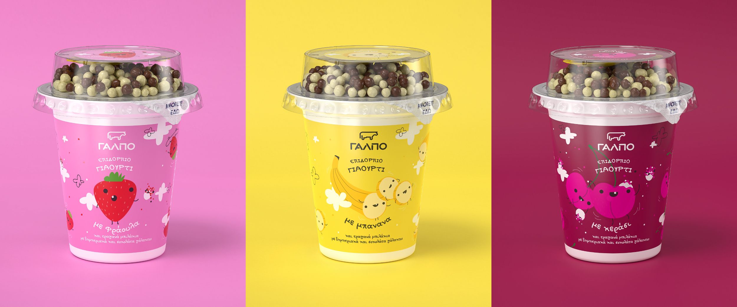 We worked on a series of kids’ fruit-flavored yogurts for Lidl Hellas. The brand name is GALPO (ΓΑΛΠΟ) and the products are sold through the Lidl supermarket chain across Greece.