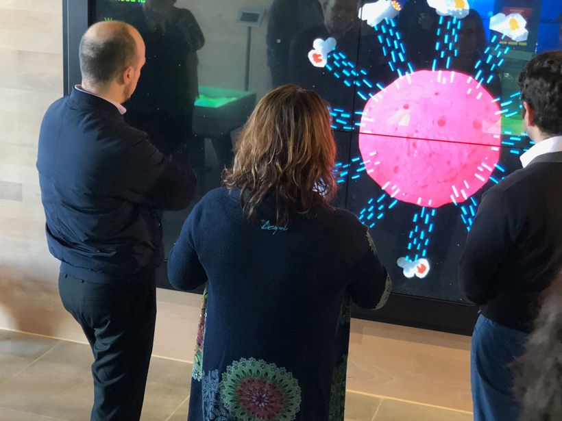 The game is a fun and educational experience for children aged between 8 and 12. It is displayed on a large screen installation (135x241cm) that consists of 4 smaller screens, paired together as a unit. It is ideal for two players.