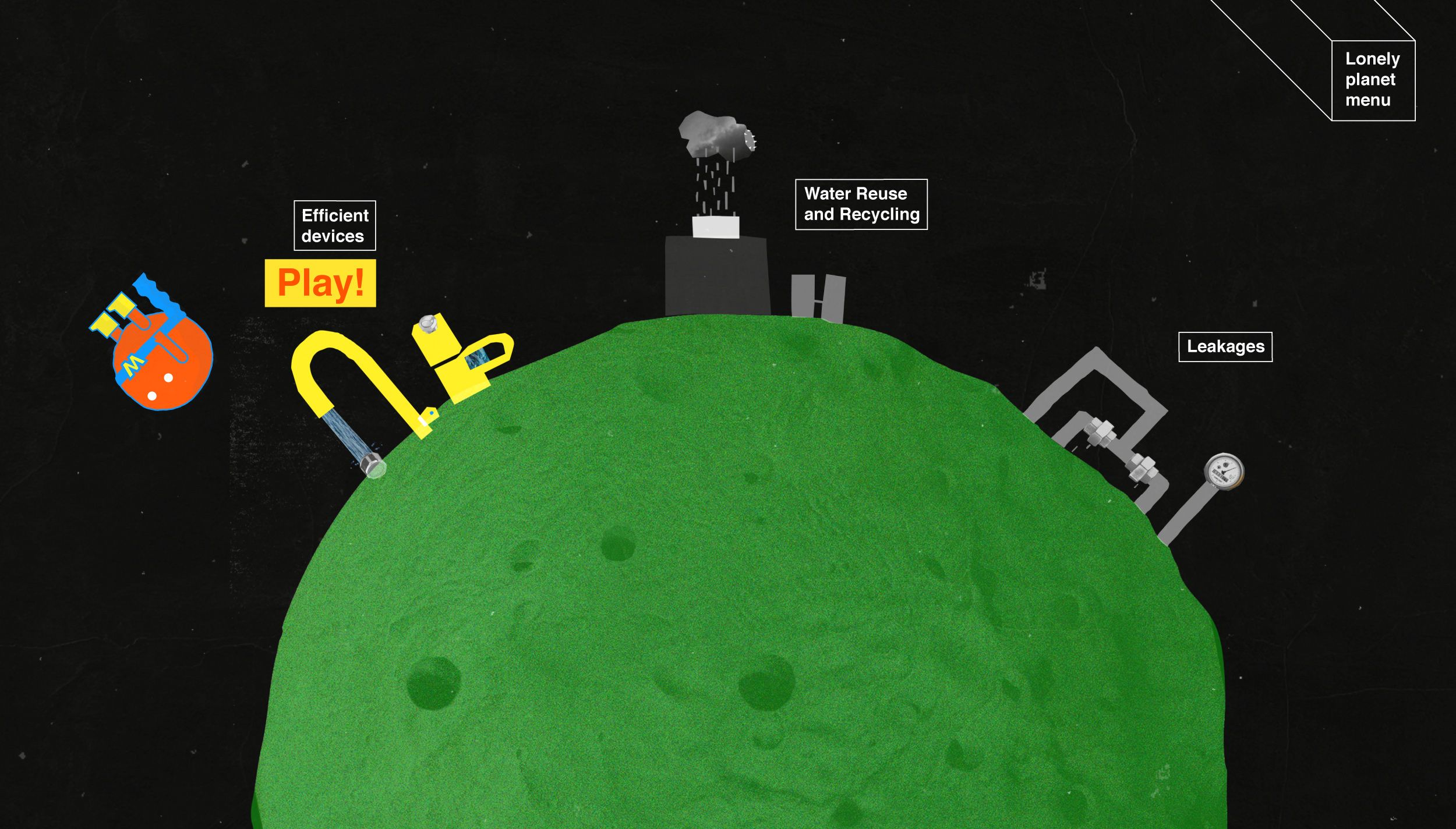 The story begins in the Lonely planet where the Water Hero lives and it presents the water saving practices in a household environment. Every stage begins with a short intro video that explains the task and device before the player is called to save water through miscellaneous CTA notifications and action-game challenges. The illustrations depict with a creative twist, devices found in a typical house. This way the player can relate to the real-life devices, learn valuable lessons and simple ways of saving water in daily life.